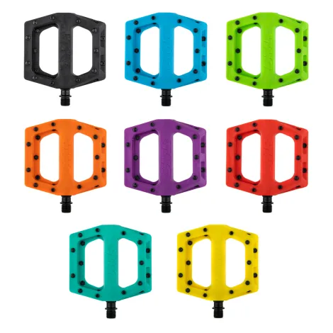 Presenting the V11 pedal. For those that favour the durability, compliance and affordability of composite pedals, the new benchmark choice from DMR is here. The V11 is moulded with the same proven shape as the multi award-winning Vault pedal, providing a huge platform with DMR’s unique concave shape that allows your foot to sit deep into the centre for supreme grip.    The V11’s durable glass reinforced nylon body features eleven replaceable steel pins each side for rock solid grip. All pins are secured with captive locknuts for ultimate durability. Outer pins are Vault Moto pins that sink deep into your shoe, keeping your foot well and truly planted. The V11 is fully rebuildable with the same proven internals as DMR Vault pedals, guaranteeing ride after ride with no-nonsense performance.   Features Large platform area 105mm x 105mm . 19mm thick. Low profile body with concave foot bed. Tuneable pins with outer Moto Pins for serious grip. Strong 4140 Cro-mo black steel axles (9/16″) with 6mm hex key fitting. Fully serviceable for long life. Weight 450g/pair.