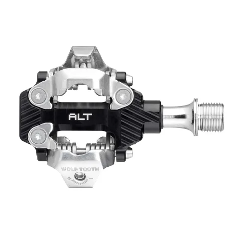 Taking clipless pedals to the next level, the ALT clipless pedal is aimed at XC and gravel riding. Light, thin and with a low stack height, these pedals deliver more platform area for next-level control and power transfer. Features Designed with XC and Gravel performance in mind. Body CNC machined from 6061-T6 aluminium. Axle from heat treated 17-4 PH stainless steel. Binding cage and hardware from stainless steel. Both thin and light, at 15mm and 295g. Large platform area of 345mm2. Adjustable Q factor options of 51, 55 and 59mm as standard. Q factor is easily adjusted by rearranging spacers and bearings. Supplied with Wolf Tooth cleats, compatible with SPD cleats. Proven axle and bearing design from the Waveform Pedal. Designed and machined at Wolf Tooth’s Minnesota headquarters.
